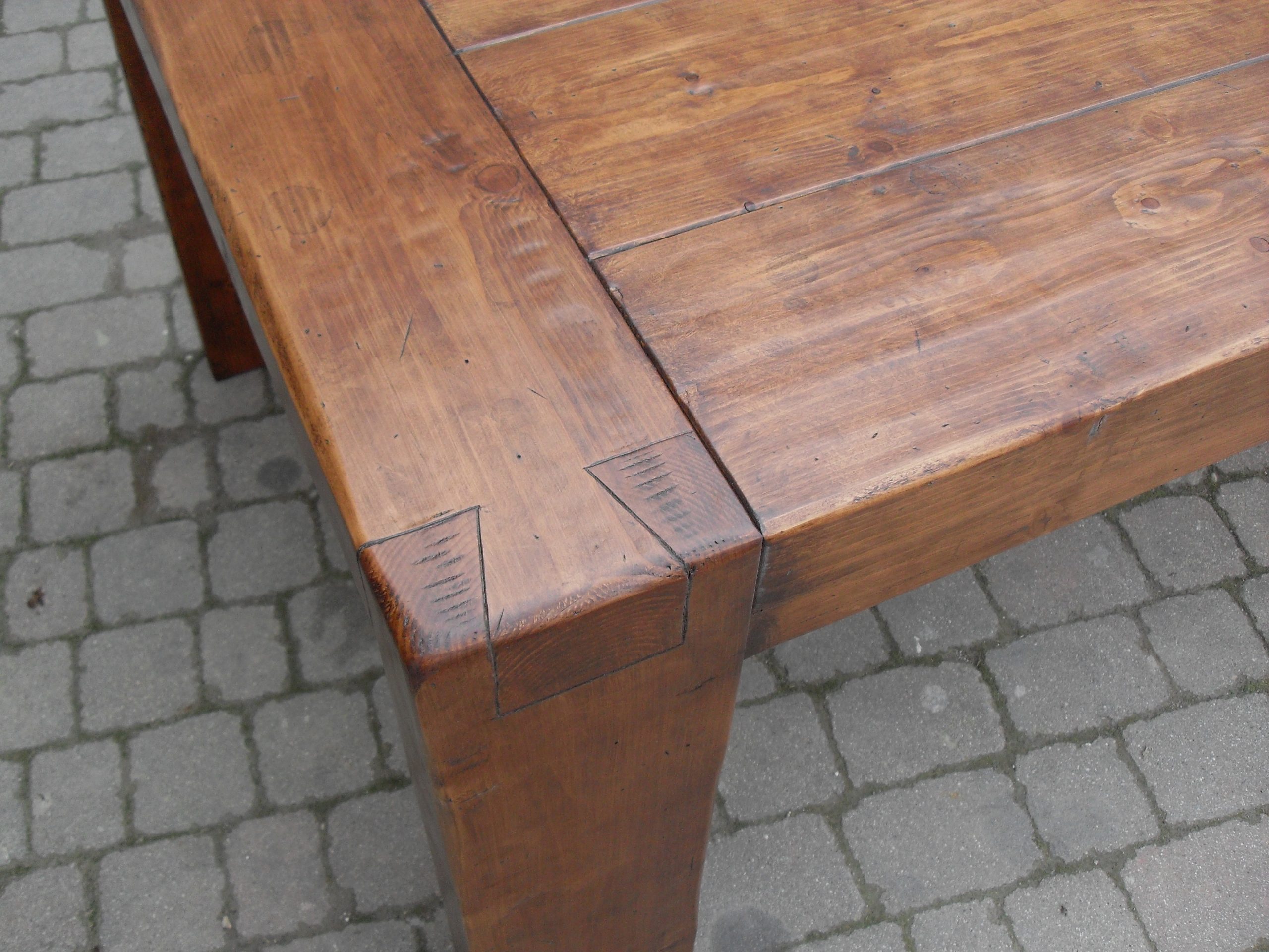Il colore caldo e la venatura del legno in vista, caratterizzato dalle piccole lavorazioni sul top enfatizzano il particolare incastro sulla gamba: impossibile non notarlo.